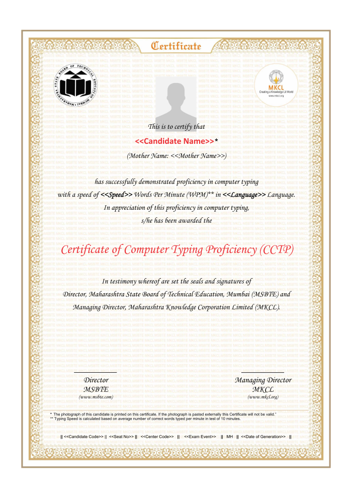 - The final certificate will display the names of both MSBTE and MKCL.